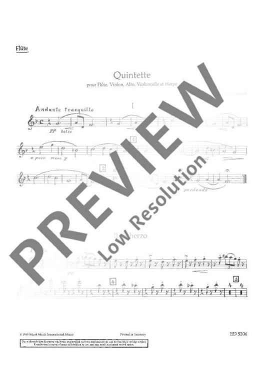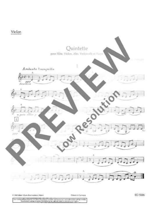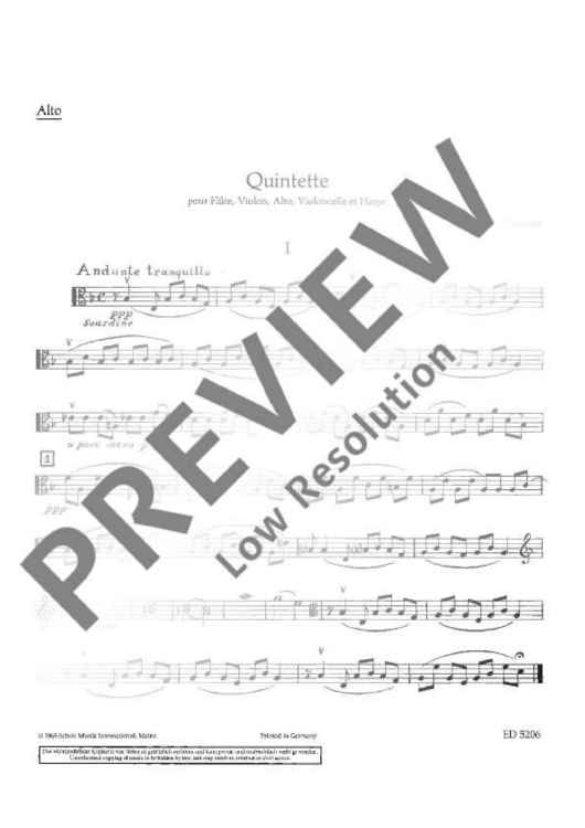 Digital Sheet Music for Quintet - Set of Parts by Jean Françaix scored for Flute, Violin, Viola, Cello And Harp; id:473381