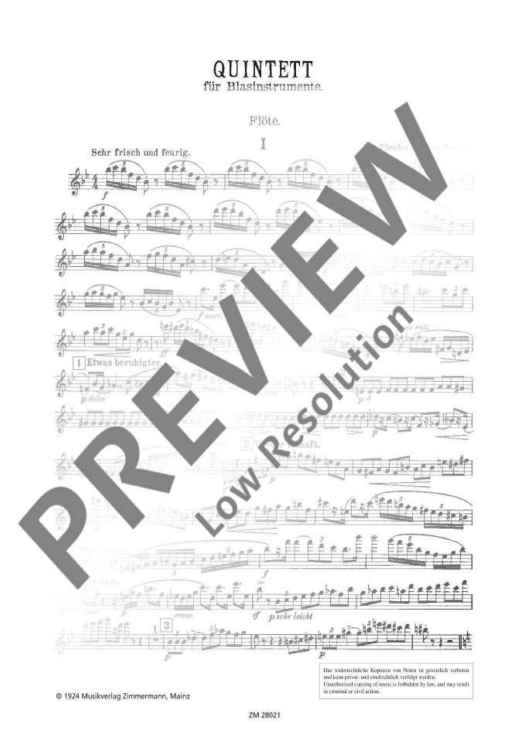 "Quintet - Set of Parts" Sheet Music by Theodor Blumer