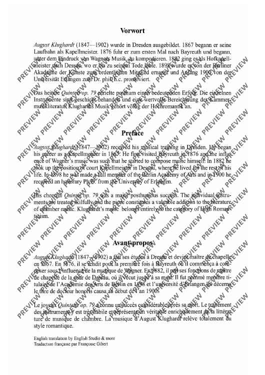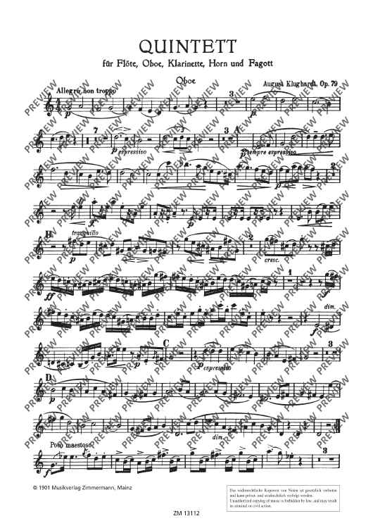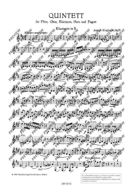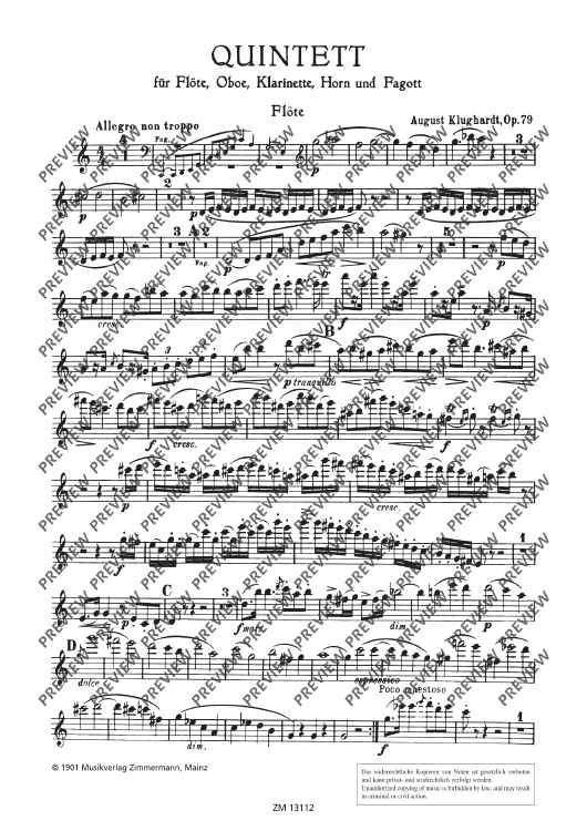 Digital Sheet Music for Quintet - Set of Parts by August Friedrich Martin Klughardt scored for Flute, Oboe, Clarinet, Horn And Bassoon; id:499129