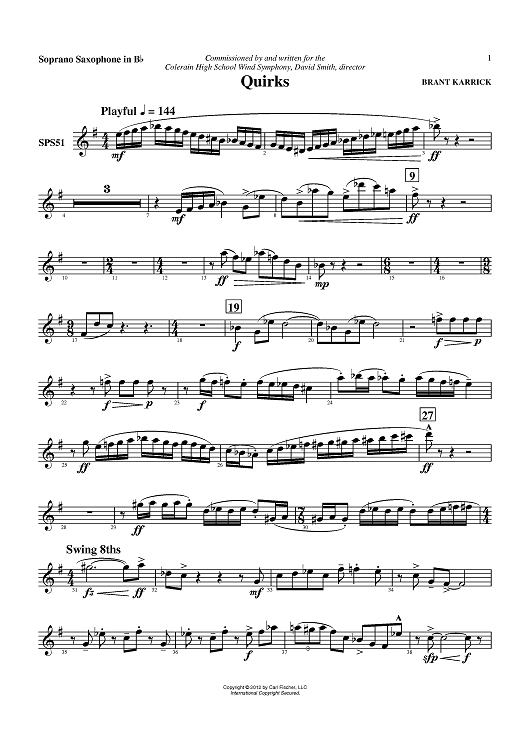 Digital Sheet Music for Quirks - Soprano Sax by Brant Karrick scored for Concert Band; id:431150