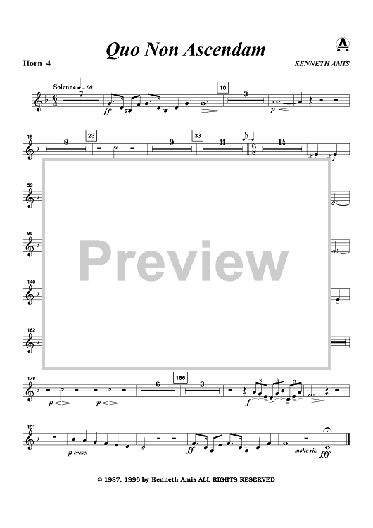 "Quo Non Ascendam - Horn 4" Sheet Music by Kenneth Amis