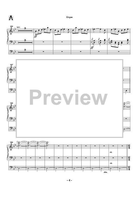 Duration: 10 minutes Instrumentation: brass choir (6 horns, 4 trumpets, 4 trombones, 2 tubas) and organ