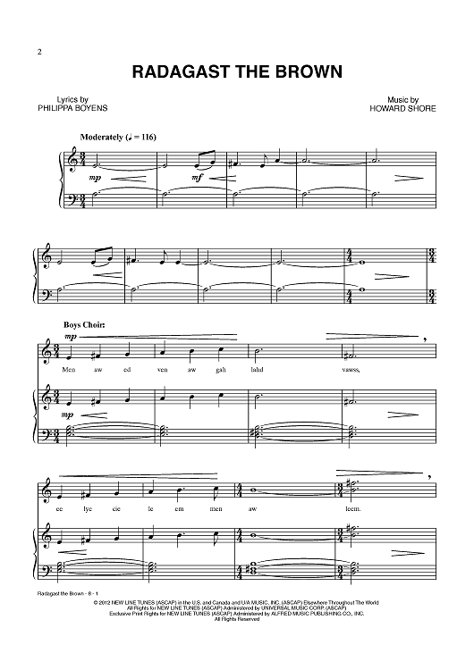 Digital Sheet Music for Radagast the Brown by Howard Shore, Philippa Boyens scored for Piano/Vocal; id:433851