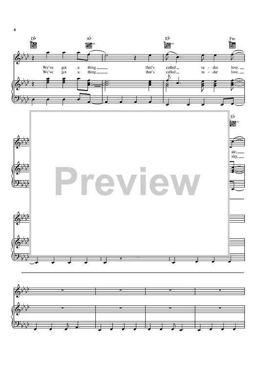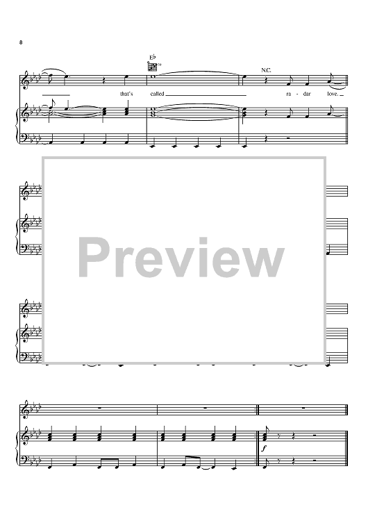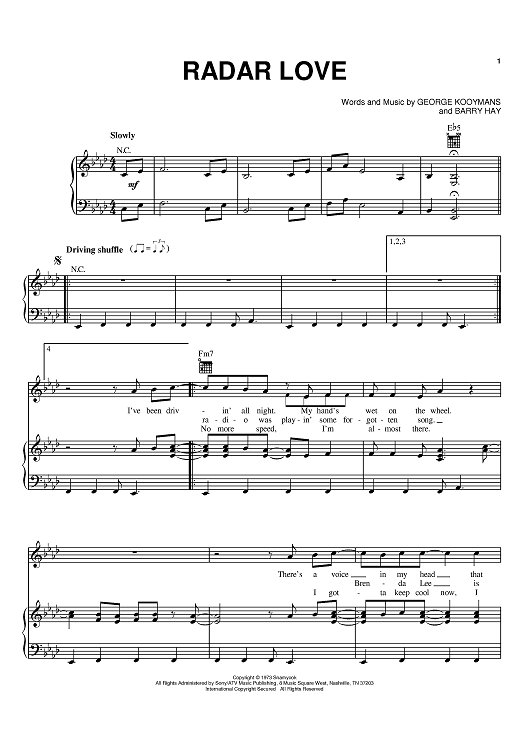 Digital Sheet Music for Radar Love by White Lion, Golden Earring, Barry Hay, George Kooymans scored for Piano/Vocal/Chords; id:368335