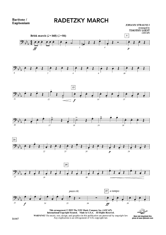 Digital Sheet Music for Radetzky March - Baritone / Euphonium by Johann Strauss I, Timothy Loest scored for Concert Band; id:498369