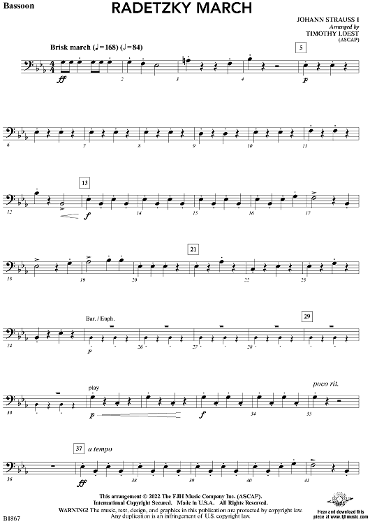 Digital Sheet Music for Radetzky March - Bassoon by Johann Strauss I, Timothy Loest scored for Concert Band; id:498358