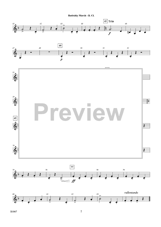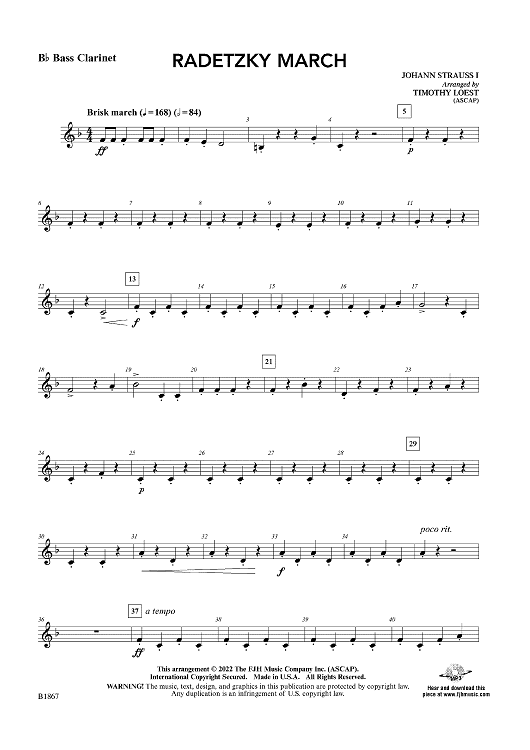 Digital Sheet Music for Radetzky March - Bb Bass Clarinet by Johann Strauss I, Timothy Loest scored for Concert Band; id:498361