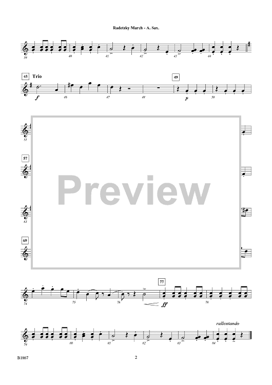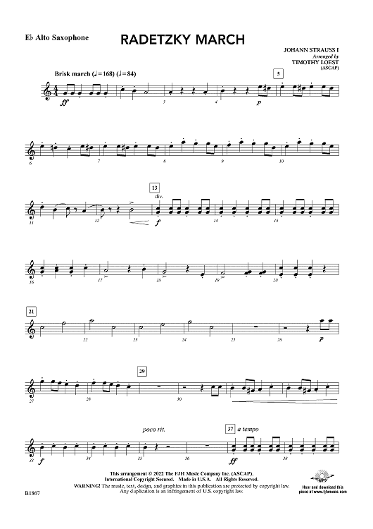Digital Sheet Music for Radetzky March - Eb Alto Sax by Johann Strauss I, Timothy Loest scored for Concert Band; id:498362