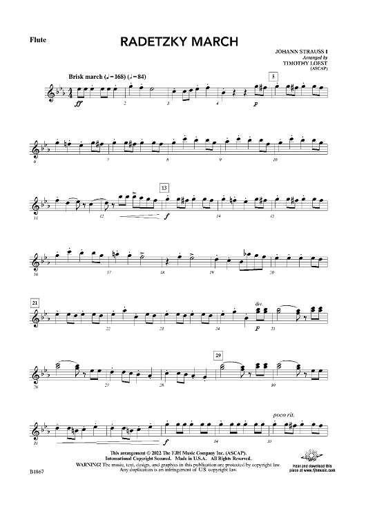Digital Sheet Music for Radetzky March - Flute by Johann Strauss I, Timothy Loest scored for Concert Band; id:498356