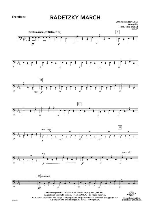 Digital Sheet Music for Radetzky March - Trombone by Johann Strauss I, Timothy Loest scored for Concert Band; id:498368