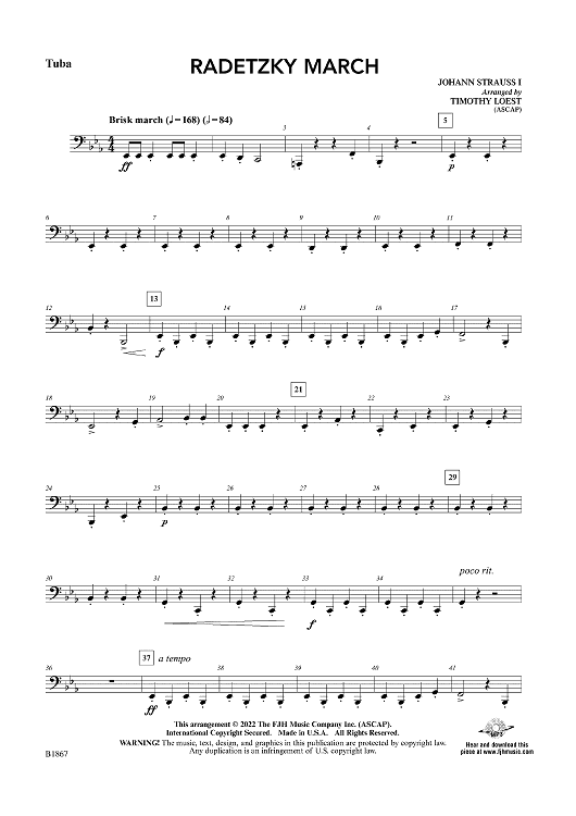Digital Sheet Music for Radetzky March - Tuba by Johann Strauss I, Timothy Loest scored for Concert Band; id:498371