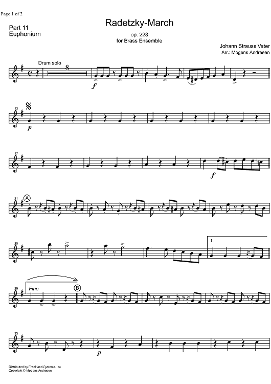 Digital Sheet Music for Radetzky Marsch Op.228 - Euphonium by Johann Strauss I, Mogens Andresen scored for Brass Ensemble; id:323284