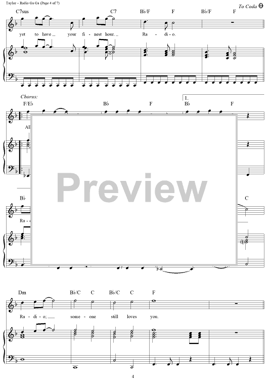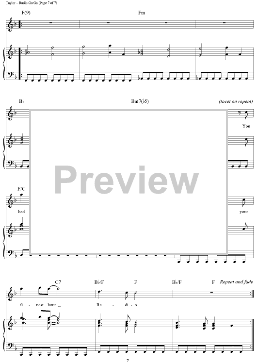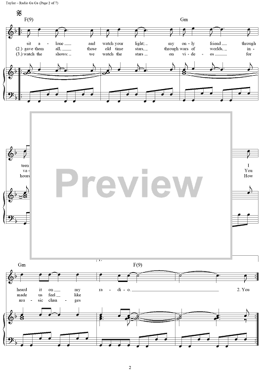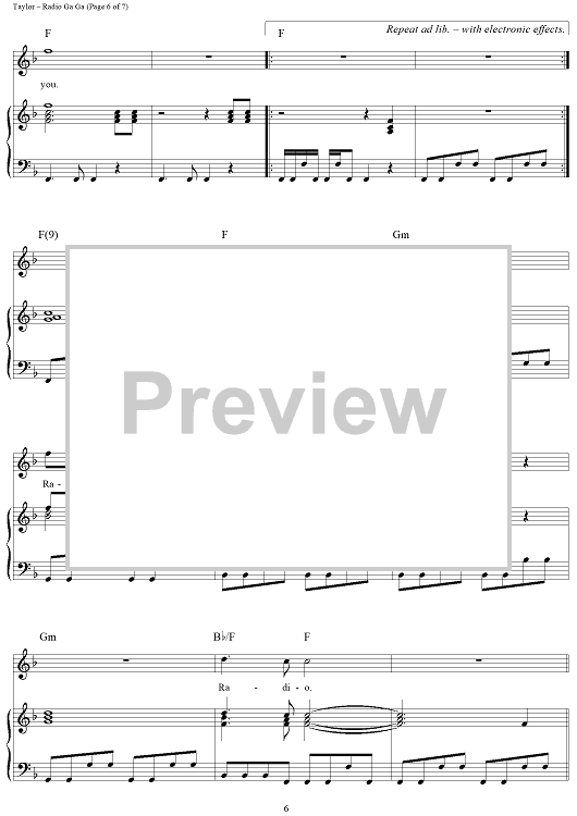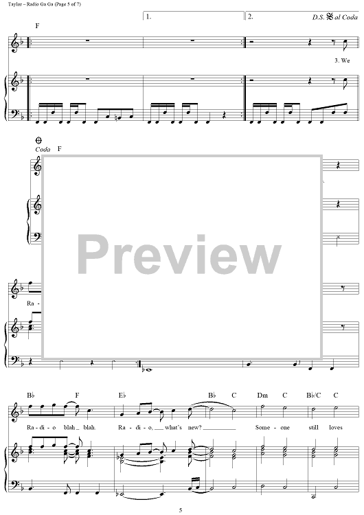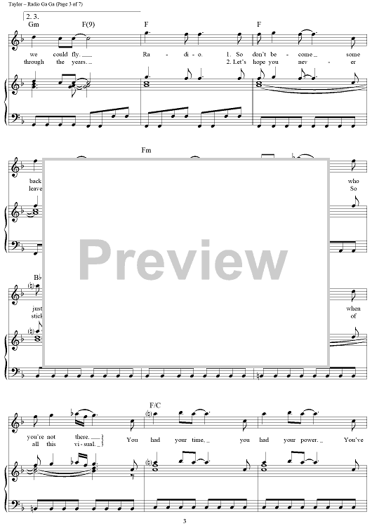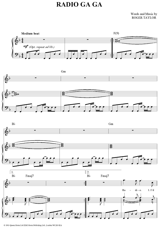 Digital Sheet Music for Radio Ga Ga by Queen, Roger Taylor scored for Piano/Vocal/Chords; id:366100