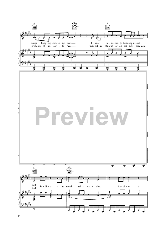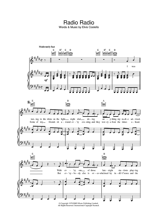 Digital Sheet Music for Radio, Radio by Elvis Costello scored for Piano/Vocal/Chords; id:390051