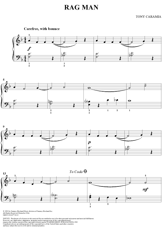Digital Sheet Music for Rag Man by Tony Caramia scored for Easy Piano; id:289568