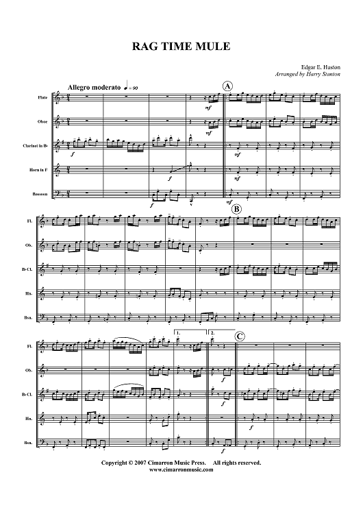 Digital Sheet Music for Rag Time Mule - Score by , Harry Stanton, E. Huston scored for Woodwind Quintet; id:365772