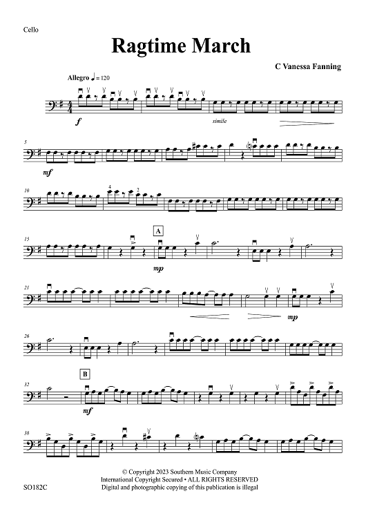 "Ragtime March - Cello" Sheet Music by Vanessa Fanning
