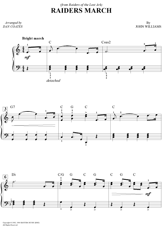 Digital Sheet Music for Raiders March by Dan Coates, John Williams scored for Easy Piano; id:452141