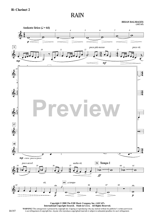 "Rain - Bb Clarinet 2" Sheet Music by Brian Balmages