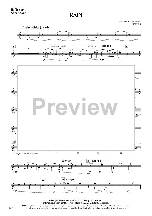 "Rain - Bb Tenor Sax" Sheet Music by Brian Balmages