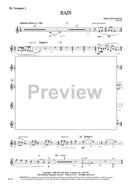 "Rain - Bb Trumpet 1" Sheet Music by Brian Balmages