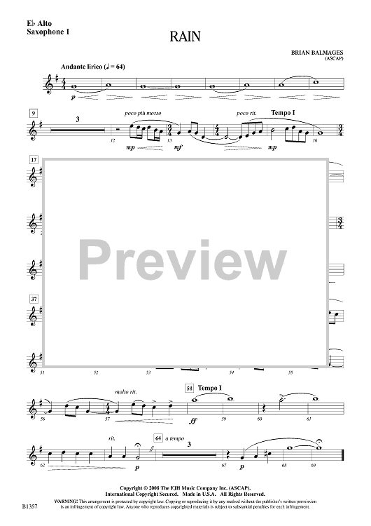 "Rain - Eb Alto Sax 1" Sheet Music by Brian Balmages