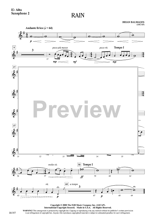 "Rain - Eb Alto Sax 2" Sheet Music by Brian Balmages