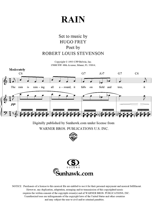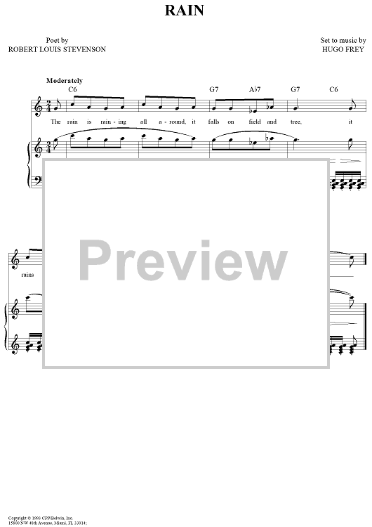 Digital Sheet Music for Rain by Robert Louis Stevenson, Hugo Frey scored for Piano/Vocal/Chords; id:269196