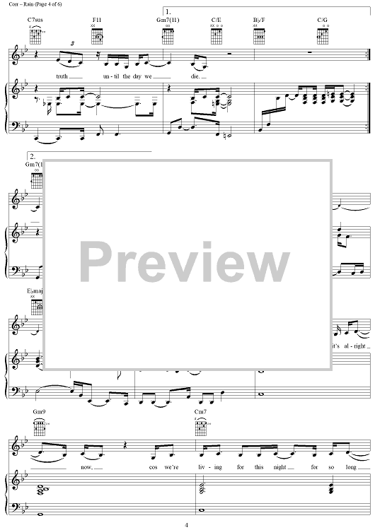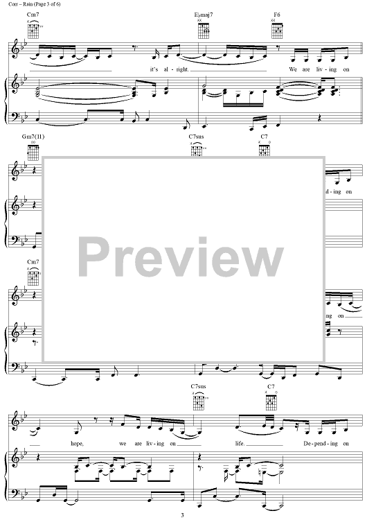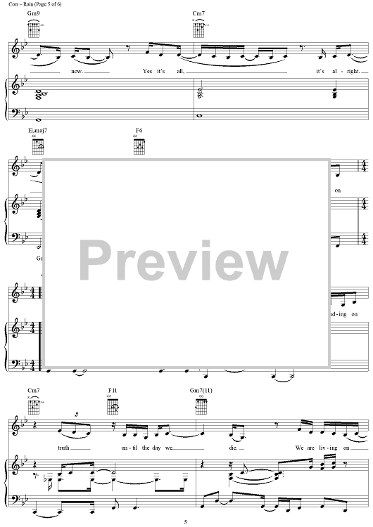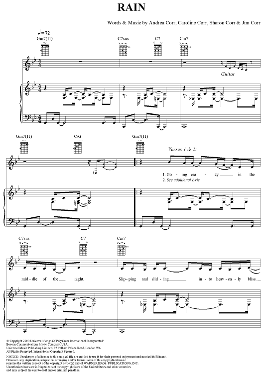 Digital Sheet Music for Rain by The Corrs, Derek Jones, Sharon Corr, Caroline Corr, Andrea Corr, Jim Corr scored for Piano/Vocal/Chords; id:287331
