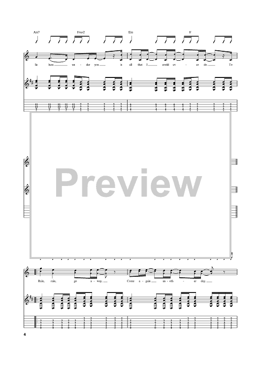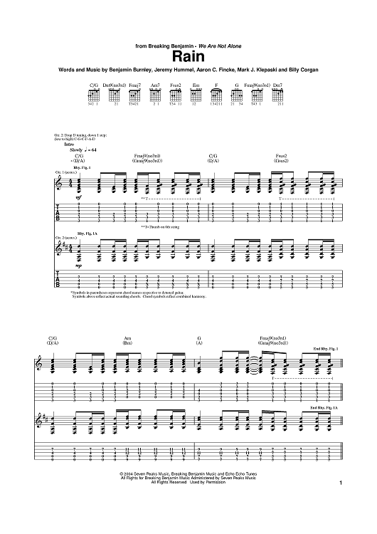 Digital Sheet Music for Rain by Billy Corgan, Breaking Benjamin, Benjamin Burnley, Aaron Fink, Jeremy Hummel, Mark Klepaski scored for Guitar Tab; id:381960