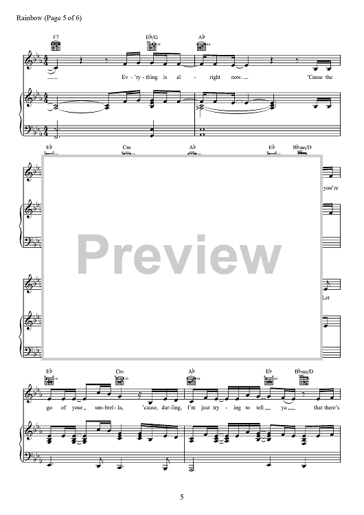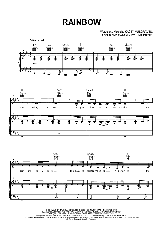 Digital Sheet Music for Rainbow by Shane McAnally, Natalie Hemby, Kacey Musgraves scored for Piano/Vocal/Chords; id:467319