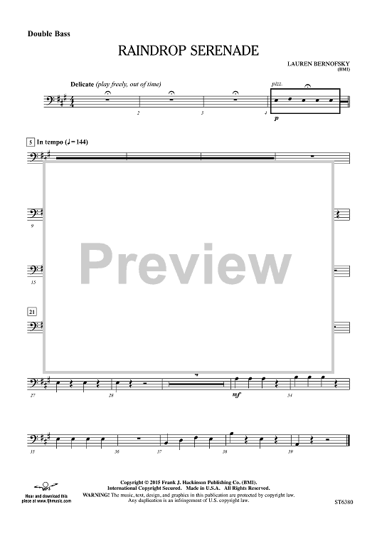 Digital Sheet Music for Raindrop Serenade - Double Bass by Lauren Bernofsky scored for Orchestra; id:456191