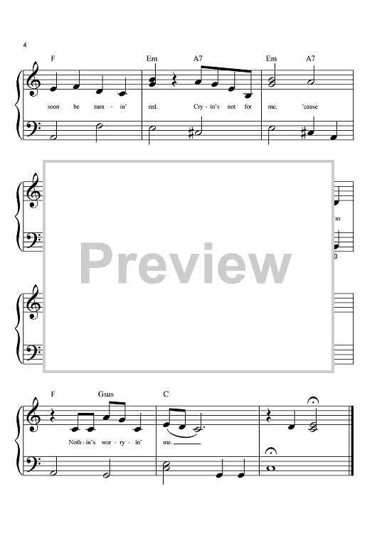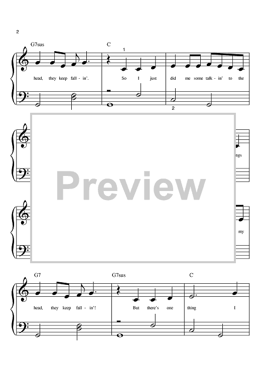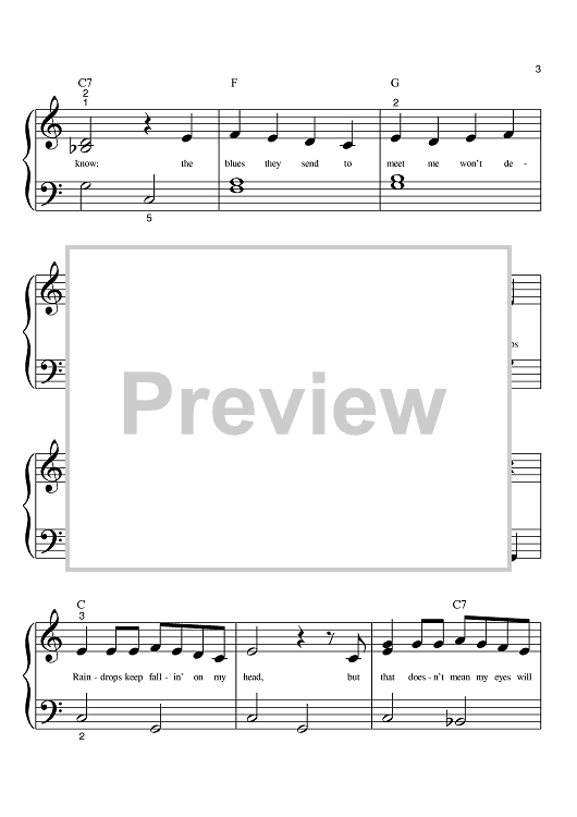 Digital Sheet Music for Raindrops Keep Fallin' On My Head by Hal David, Burt Bacharach, B. J. Thomas scored for Big Note Piano; id:398311