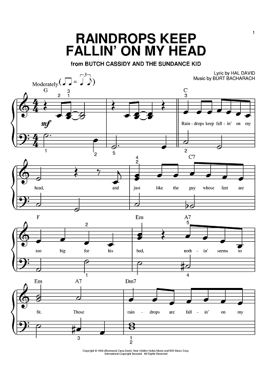 "Raindrops Keep Fallin' On My Head" Sheet Music by Burt Bacharach