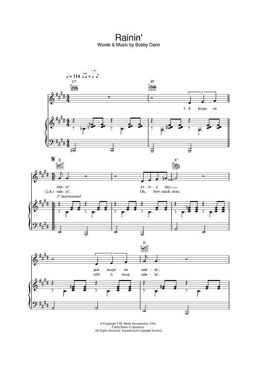 Digital Sheet Music for Rainin' by Bobby Darin scored for Piano/Vocal/Chords; id:383913