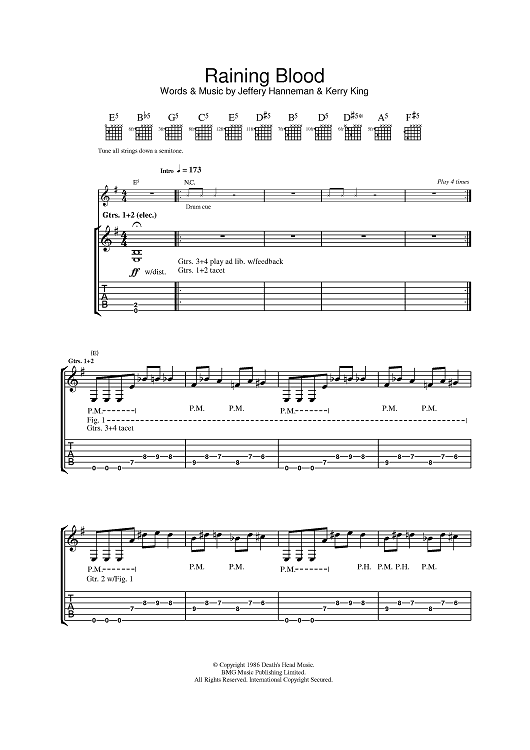 Digital Sheet Music for Raining Blood by Jeff Hanneman, Kerry King, Slayer scored for Guitar Tab; id:389315