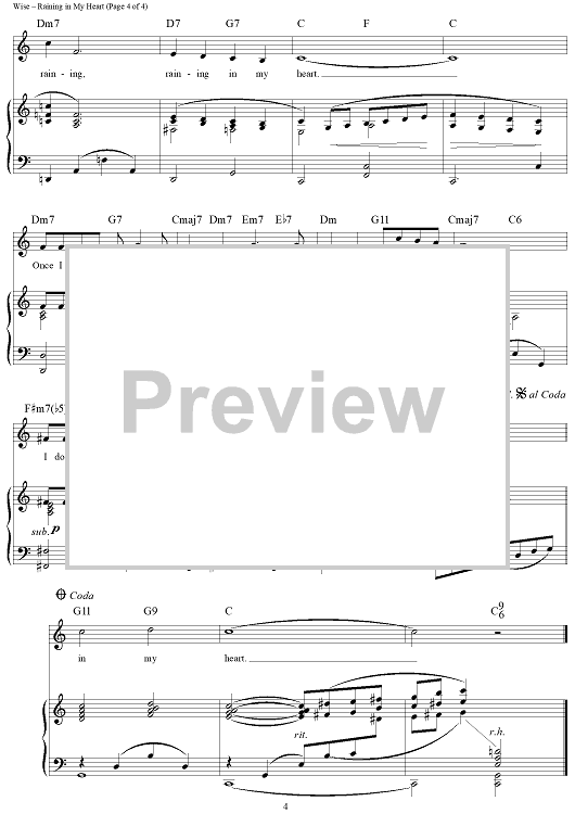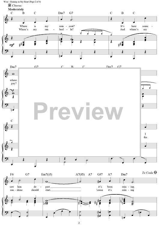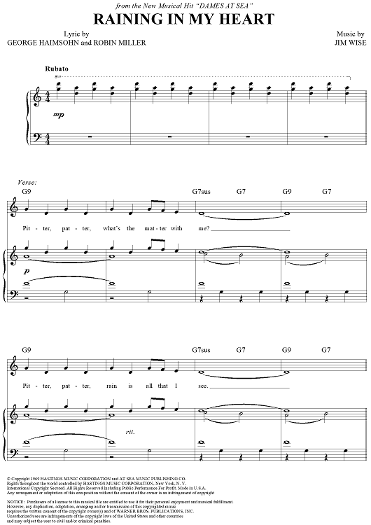Digital Sheet Music for Raining in My Heart by Jim Wise, George Haimsohn, Robin Miller scored for Piano/Vocal/Chords; id:312608
