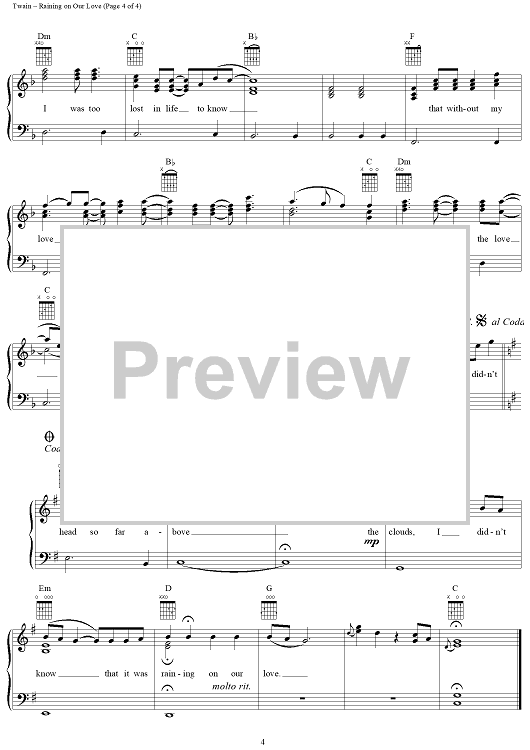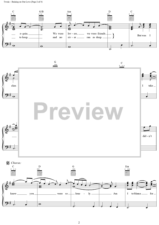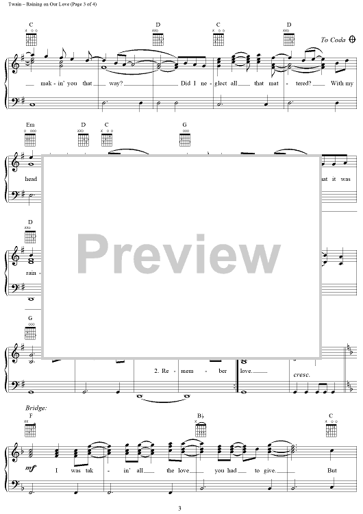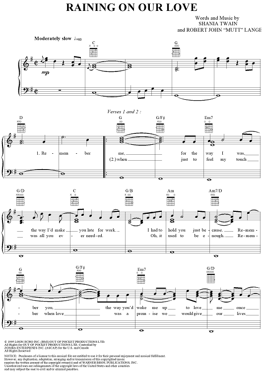 Digital Sheet Music for Raining On Our Love by Shania Twain, Robert Lange scored for Piano/Vocal/Chords; id:112683