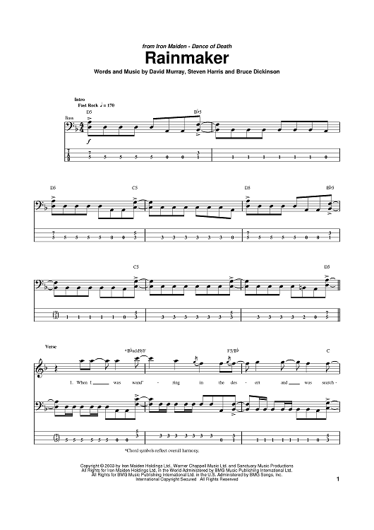 Digital Sheet Music for Rainmaker by Steve Harris, Bruce Dickinson, Iron Maiden, Dave Murray scored for Bass Tab; id:382320