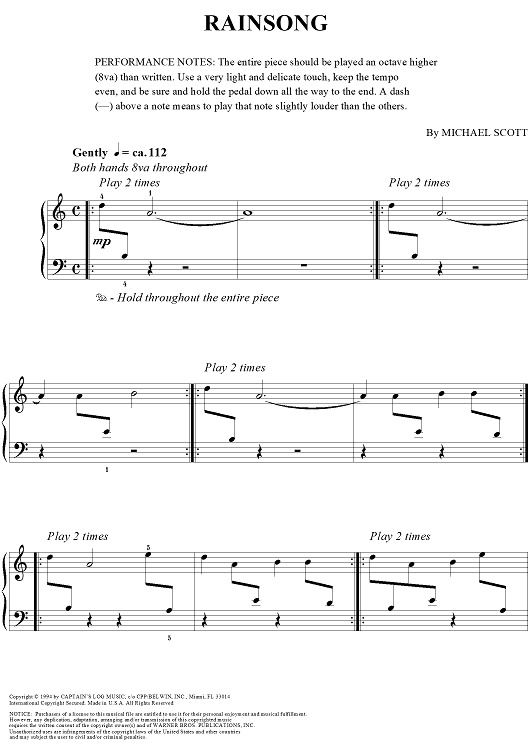 Digital Sheet Music for Rainsong by Michael Scott scored for Easy Piano; id:257384