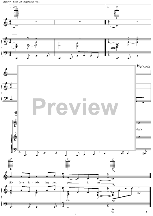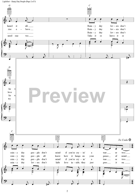Digital Sheet Music for Rainy Day People by Gordon Lightfoot scored for Piano/Vocal/Chords; id:124355
