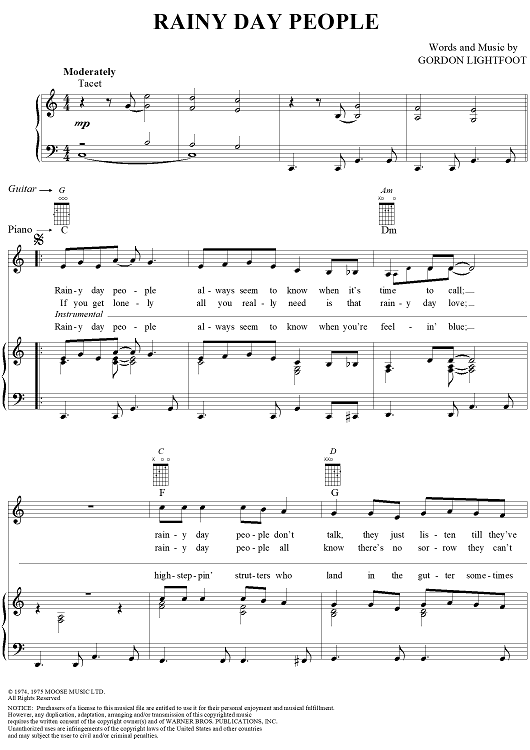 "Rainy Day People" Sheet Music by Gordon Lightfoot
