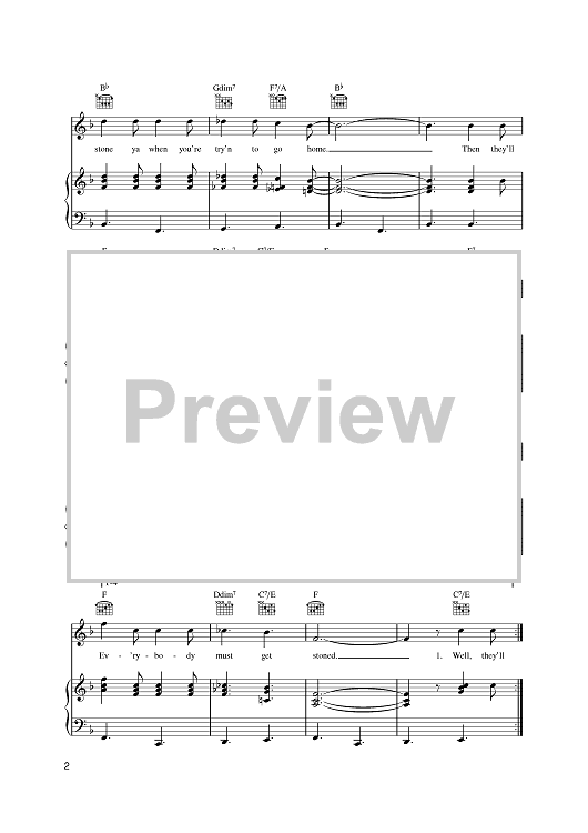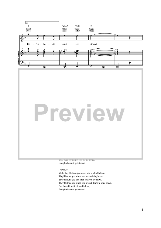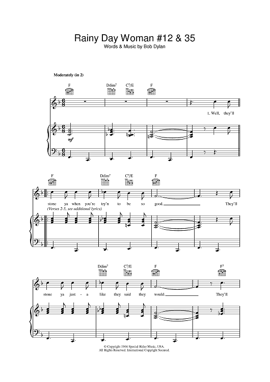 Digital Sheet Music for Rainy Day Woman #12 & 35 by Bob Dylan scored for Piano/Vocal/Chords; id:390024