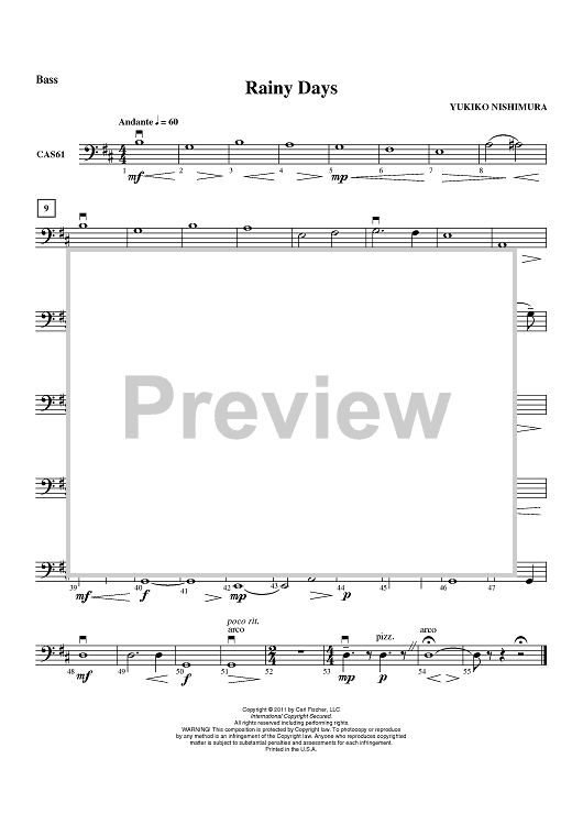 "Rainy Days - Bass" Sheet Music by Yukiko Nishimura