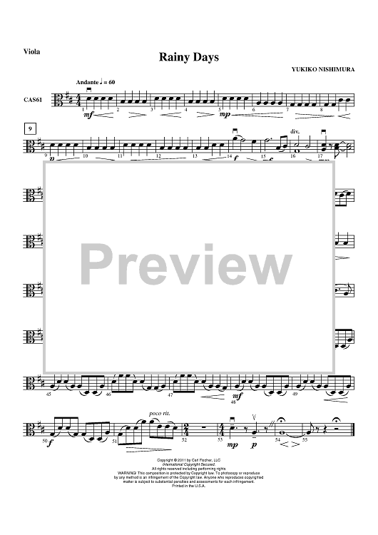 "Rainy Days - Viola" Sheet Music by Yukiko Nishimura