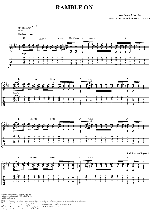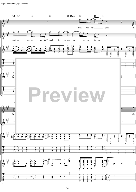 "Ramble On" Sheet Music by Led Zeppelin