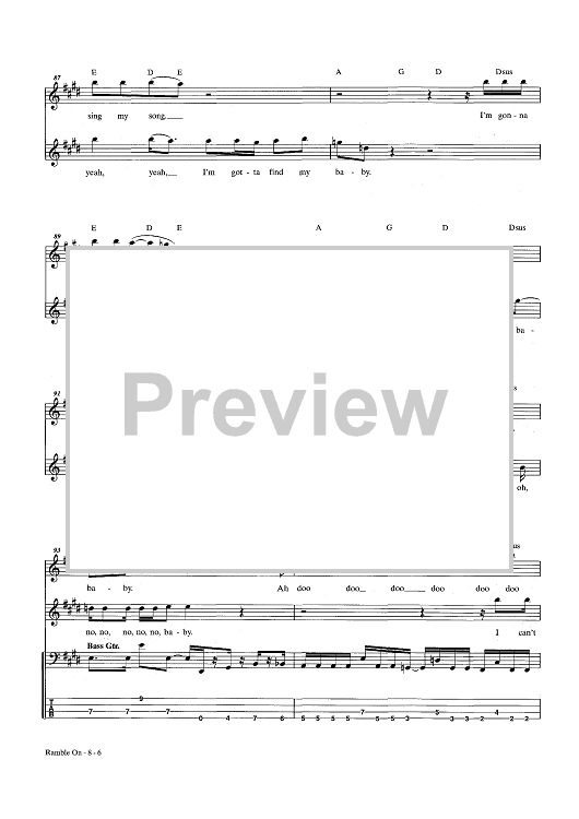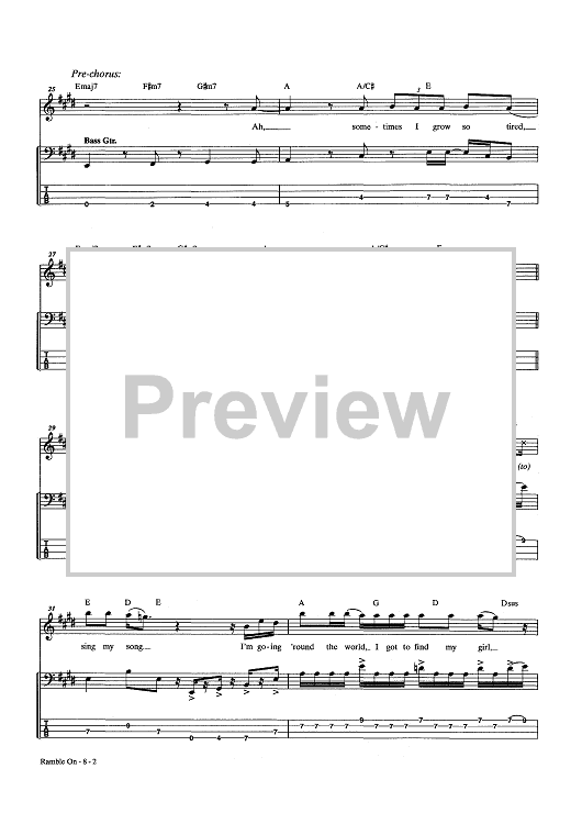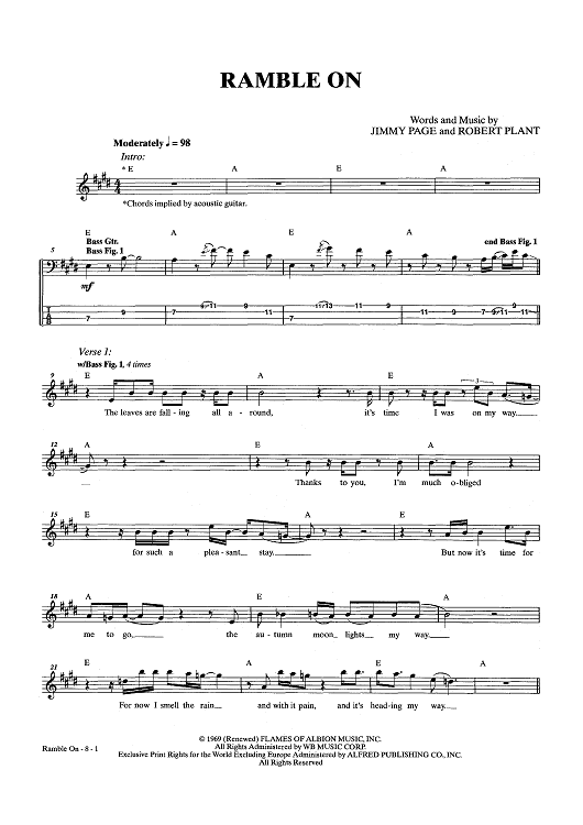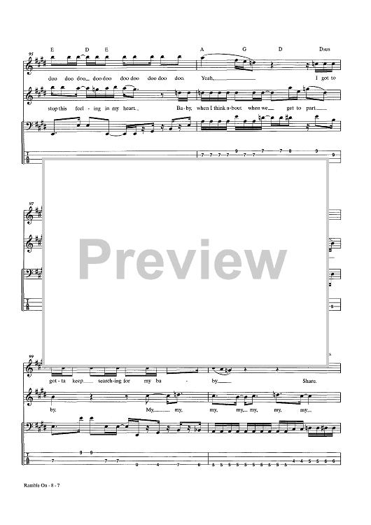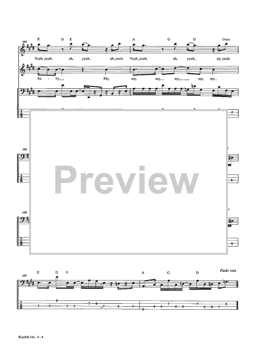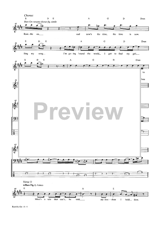 Digital Sheet Music for Ramble On by Jimmy Page, Led Zeppelin, Robert Plant scored for Bass Tab; id:444100