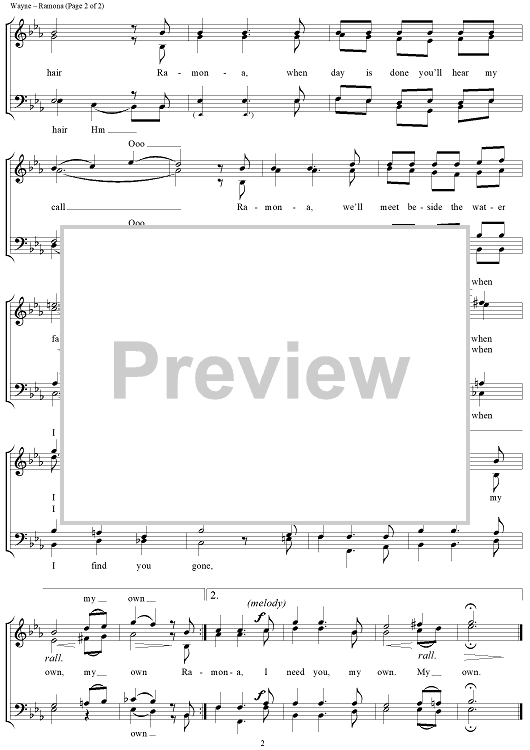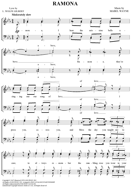 Digital Sheet Music for Ramona by L. Wolfe Gilbert, Mabel Wayne scored for Barbershop Quartet; id:264629