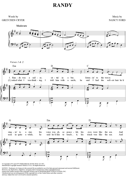 Digital Sheet Music for Randy by Nancy Ford, Gretchen Cryer, Cryer and Ford scored for Piano/Vocal/Chords; id:269489