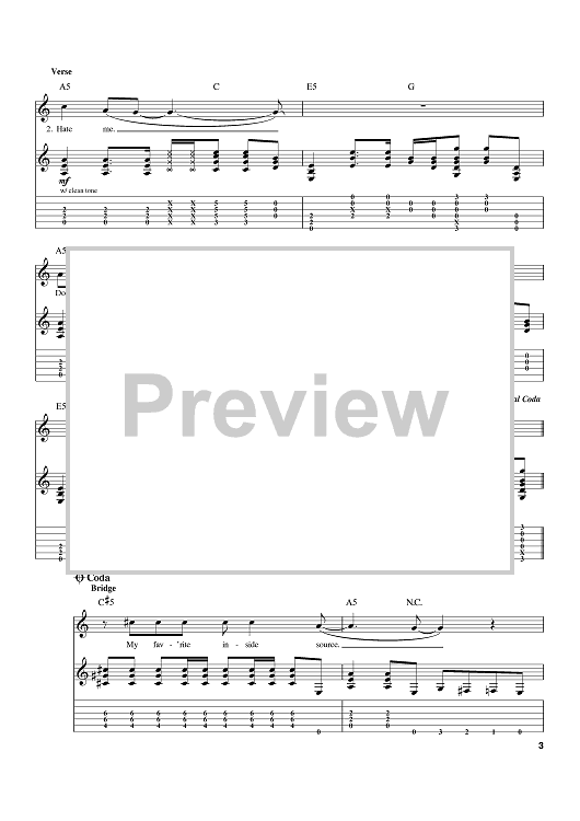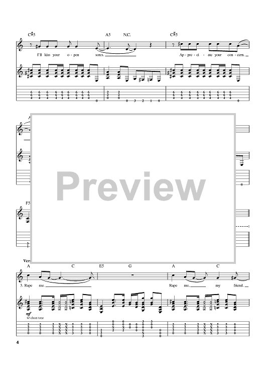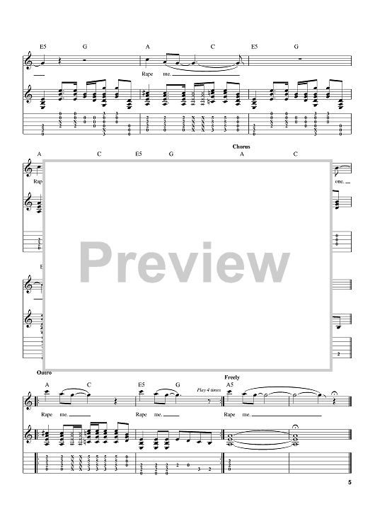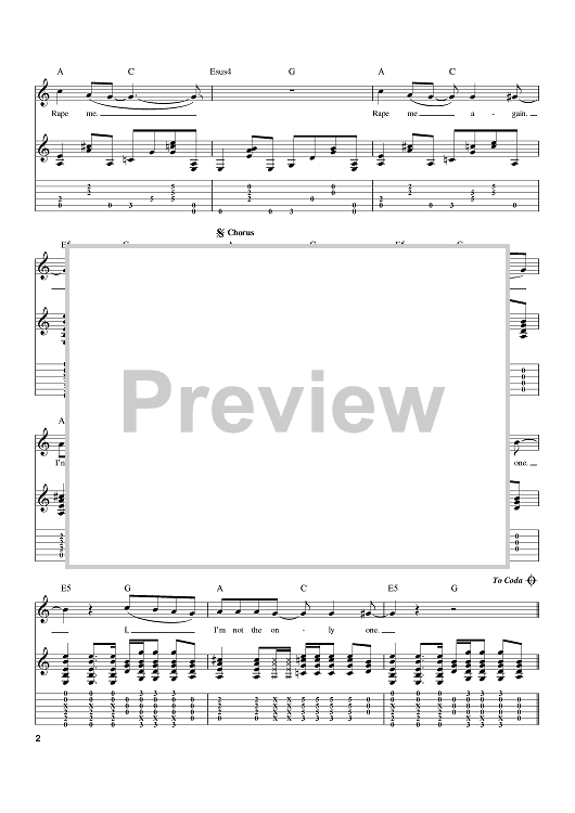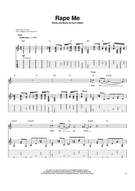 Digital Sheet Music for Rape Me by Kurt Cobain, Nirvana scored for Guitar Tab; id:402475